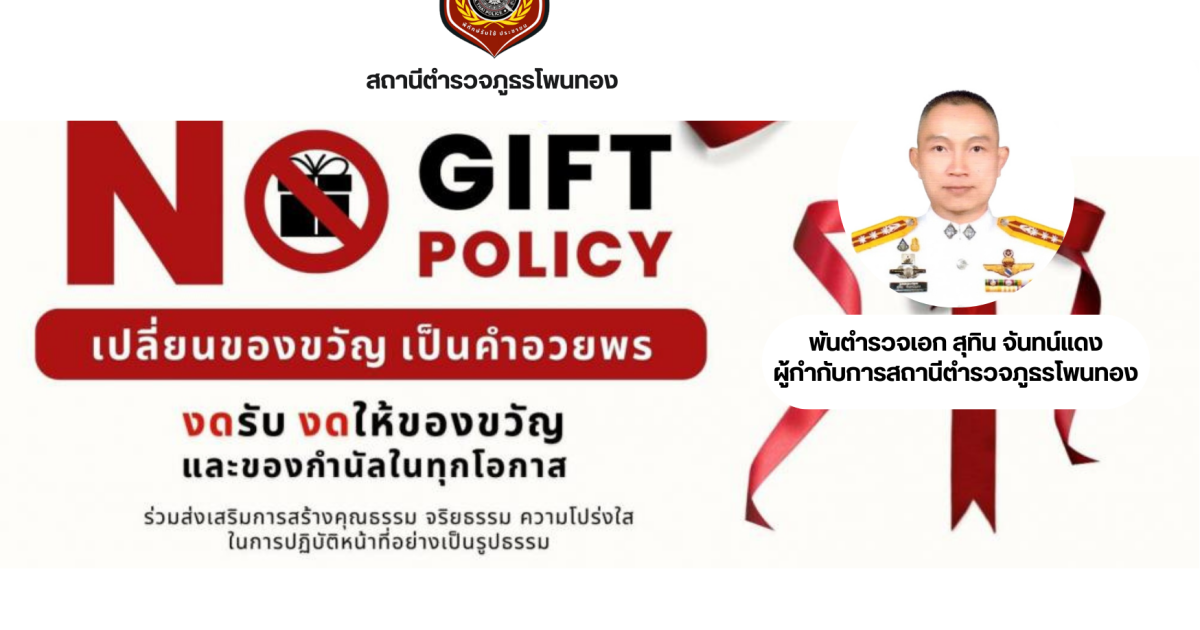 ประชาสัมพันธ์ข้อมูลการประเมินคุณธรรมและความโปร่งใสในการดำเนินงาน ของหน่วยงานภาครัฐ (Integrity & Transparency Assessment : ITA) โดย / ข่าวประชาสัมพันธ์,ข่าวกิจกรรม สถานีตำรวจภูธรโพนทอง จังหวัดเลยประชาสัมพันธ์การประเมินคุณธรรมและความโปร่งใสในการดำเนินงานของหน่วยงานภาครัฐ ของสถานีตำรวจภูธรโพนทอง ประจำปีงบประมาณ พ.ศ.2568 โดยมี พ.ต.อ.สุทิน จันทน์แดง ผกก.สภ.โพนทอง กำหนดนโยบายไม่รับของกำนัล