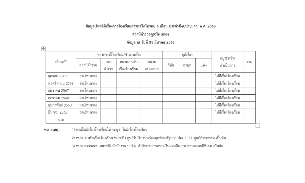 ข้อมูลเชิงสถิติเรื่องร้องเรียนการทุจริต