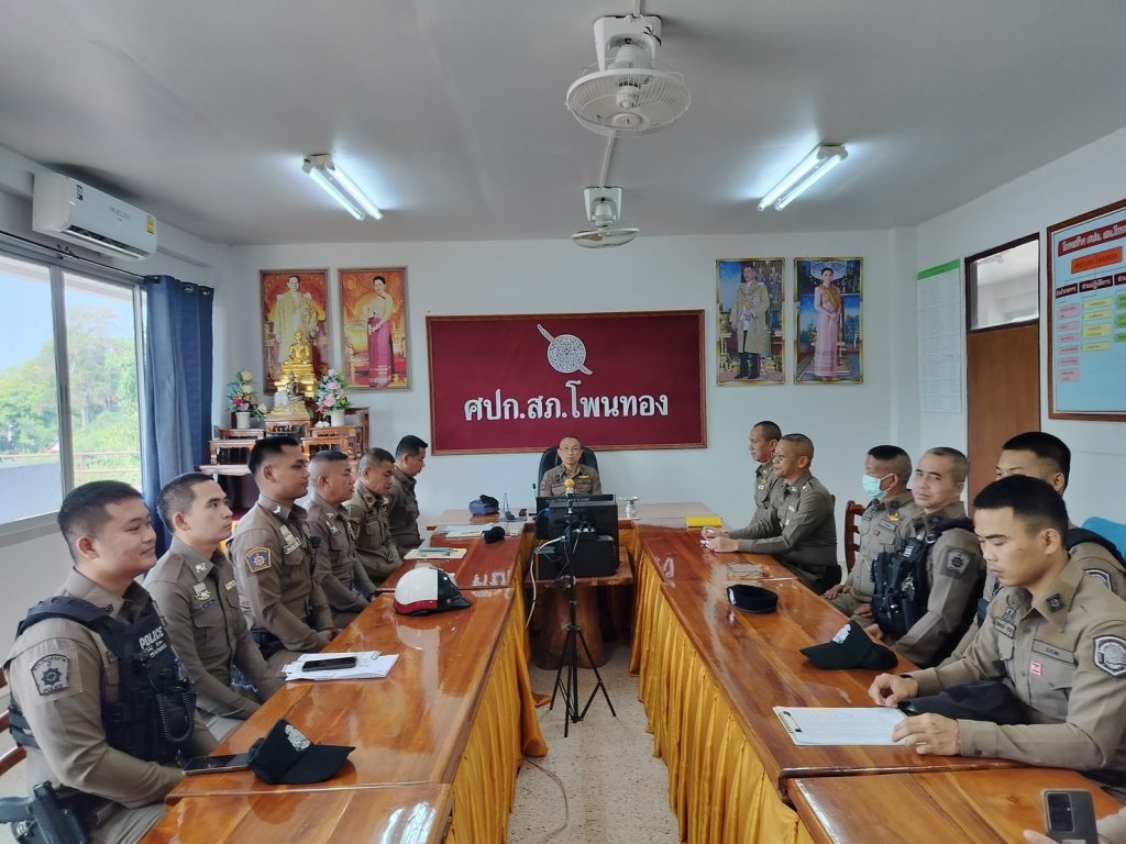 พ.ต.อ.สุทิน จันทน์แดง ผกก.สภ.โพนทอง นำข้าราชการตำรวจในสังกัด รวมแถวเคารพธงชาติและร้องเพลงชาติ/สวดมนต์ไหว้พระ/กล่าวบทปลงใจ/คำสัตย์ปฏิญาณ/อุดมคติตำรวจ ท่องปรมาภิไธย/ร้องเพลงสรรเสริญพระบารมี ตรวจทรงผม เครื่องแต่งกาย ประชุมพร้อม จัดให้มีการอบรม ข้าราชการตำรวจ สภ.โพนทอง จัดให้มีการอบรม เจ้าหน้าที่ตำรวจ เสริมสร้ำงความรู้ความเข้าใจให้เจ้าหน้าที่ในการจัดการทรัพย์สินของราชการ การเบิกจ่ายสิ่งของให้แก่เจ้าหน้าที่ตำรวจเพื่อนำมาใช้ในการปฏิบัติหน้าที่ เน้นย้ำต้องมีการลงชื่อในการเบิกจ่ายทุกครั้ง การไม่นำสิ่งของหลวงไปจำนำหรือนำไปใช้ในเรื่องที่นอกเหนือการปฏิบัติหน้าที่ โดยจะมีการเรียกตรวจสอบสิ่งของหลวงเป็นประจำทุกเดือน หากผู้ใดไม่นำสิ่งของหลวงมาตรวจจะมีมาตรการลงโทษอย่างเด็ดขาด นอกจากนี้ยังได้กำชับ เรื่องการจัดเก็บของกลางและวัตถุพยาน กับหนักงานสอบสวนและเจ้าหน้าที่ดูแลของกลาง ให้มีความชัดเจนโปร่งใส ใครเป็นผู้ถือกุญแจบ้าง และผู้ไม่มีส่วนเกี่ยวข้องห้ามเข้าไปภายในห้องจัดเก็บของกลาง ในคดีไหนมีของกลางชิ้นไหนบ้างให้ลงรายละเอียดลงในสำนวนคดี พร้อมทั้งของกลางที่นำเข้ามายังห้องจัดเก็บของกลาง ต้องมีสมุดบันทึก การนำเข้า-นำออกของกลางพร้อมลายเซ็น เจ้าหน้าที่ซึ่งเกี่ยวข้องในคดีนั้นๆเพื่อความถูกต้องของจำนวนและประเภทของของกลาง ให้เจ้าหน้าที่ปฏิบัติตามอย่างเคร่งครัด หากมีข้อร้องเรียนจะมีการตั้งกรรมการสอบสวนข้อเท็จจริงและลงโทษอย่างเด็ดขาดต่อไป พร้อมทั้งแสดงตัวอย่างการวิธีการดูแลรักษาสิ่งของหลวง เพื่อให้ข้าราชตำรวจ สภ.โพนทอง นำไปปฏิบัติไปในแนวทางเดียวกัน ณ ห้องประชุม ศปก.สภ.โพนทอง ชั้น 2 สภ.โพนทอง