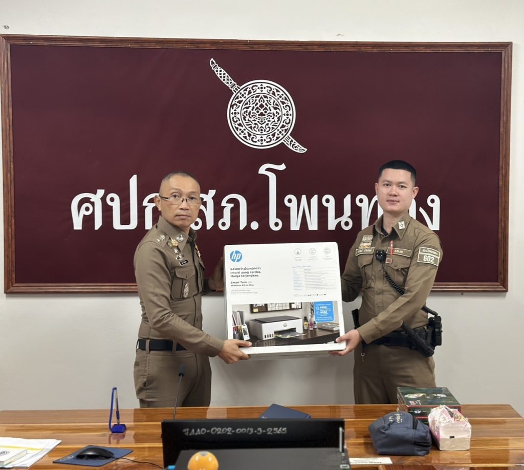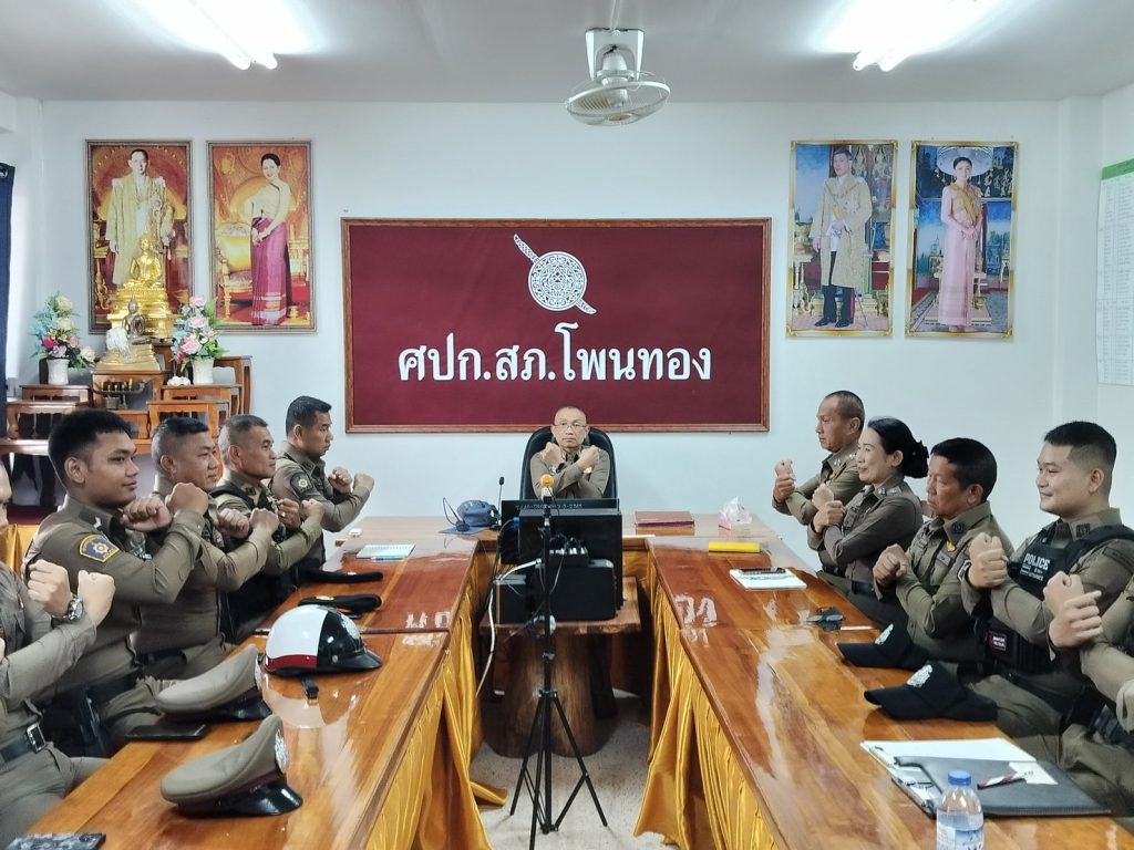 พ.ต.อ.สุทิน จันทน์แดง ผกก.สภ.โพนทอง ประชุมพร้อมมอบข้อราชการประจำสัปดาห์ และได้มอบอุปกรณ์ในการทำงาน -เครื่องปริ้นเตอร์-โน้ตบุ๊ค-ไฟฉาย/สปอร์ตไลท์